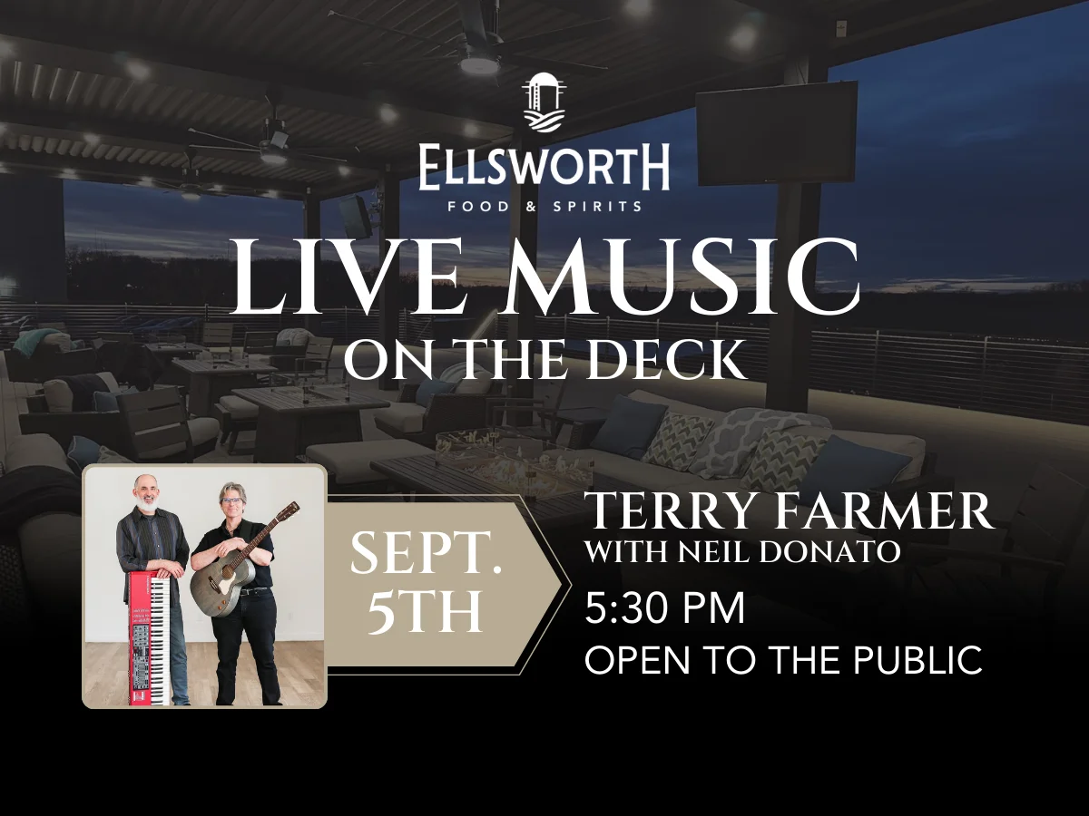 Live Music on the Deck Live Music on the Deck with Terry Farmer & Neil Donato Kick off your weekend with a delicious bite to eat and your favorite hand-crafted cocktails with family and friends! Live Music begins at 5:30pm + Add to Google Calendar + iCal / Outlook export Date Sep 05 2025 Expired! Time 5:30 pm Category Social Events Share this event