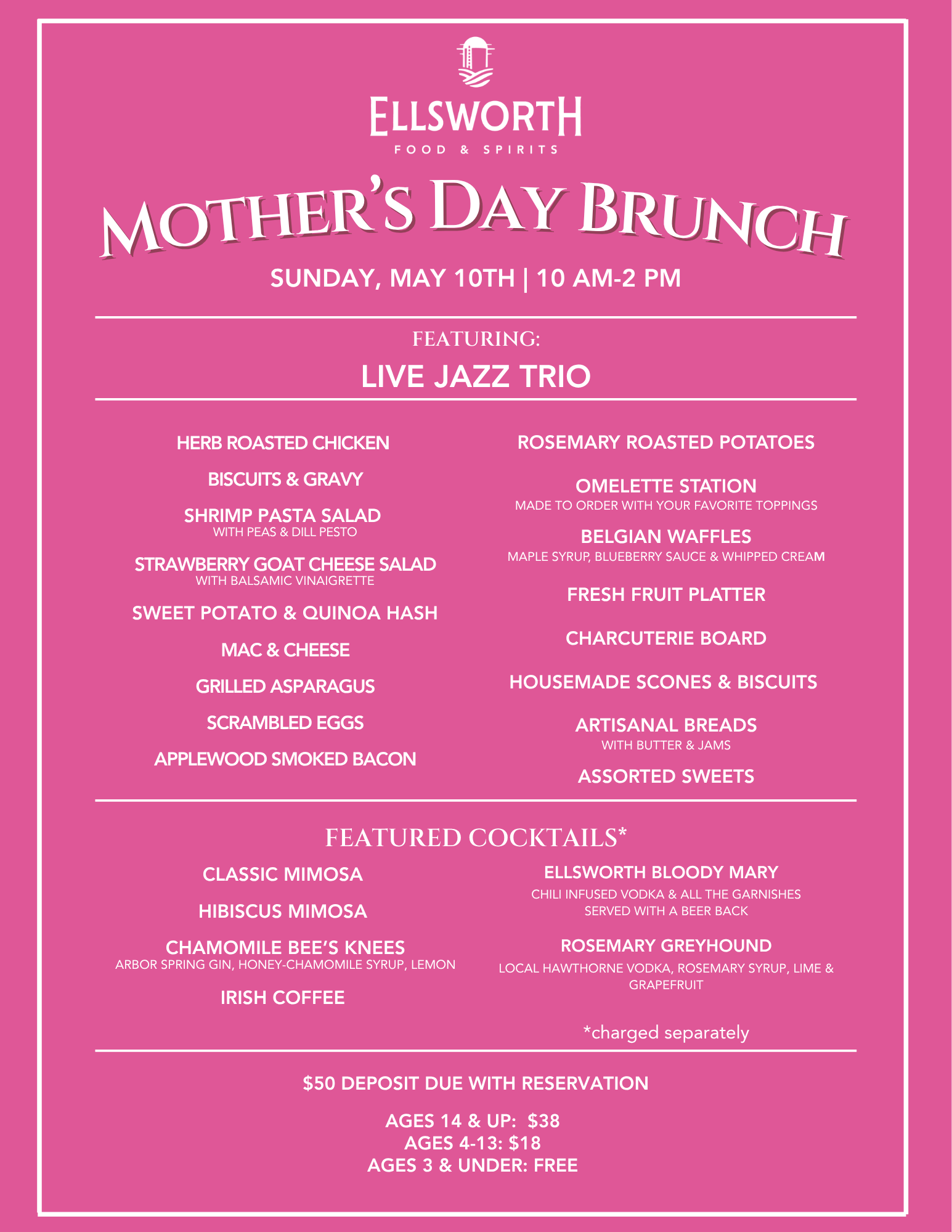 Reservation Deposit: $50 per reservation (not per person) due at the time of booking.